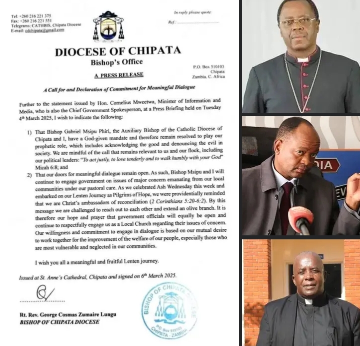 Despite the charged tone, Bishop Lungu extended an olive branch not as a sign of surrender, but as a call for genuine dialogue. “Our doors for meaningful dialogue remain open,” he said.
