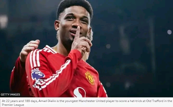 Amad Diallo was not even off the pitch at that point. After grabbing the match ball and acknowledging the adulation of all four sides of Old Trafford, the Ivorian was dragged to the portable broadcast table quickly erected pitchside to talk about his momentous achievement, equalising eight minutes from the end of what had been a tepid performance before scoring twice in stoppage time to give United victory.