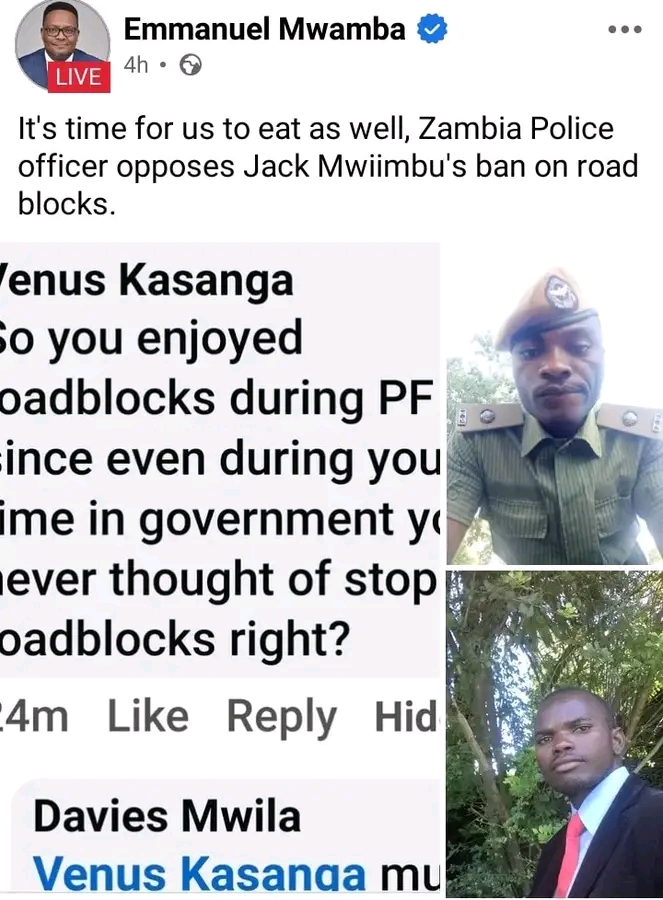 In his recent post, Mr. Mwamba attempted to frame a Zambia Police officer who merely made a factual comment in support of the Minister of Home Affairs and Internal Security, Hon. Jack Mwiimbu’s directive to reduce unnecessary roadblocks. The officer, in his comment, highlighted a simple truth that during the PF era, the same leaders failed to end unnecessary roadblocks, despite having every opportunity to do so.