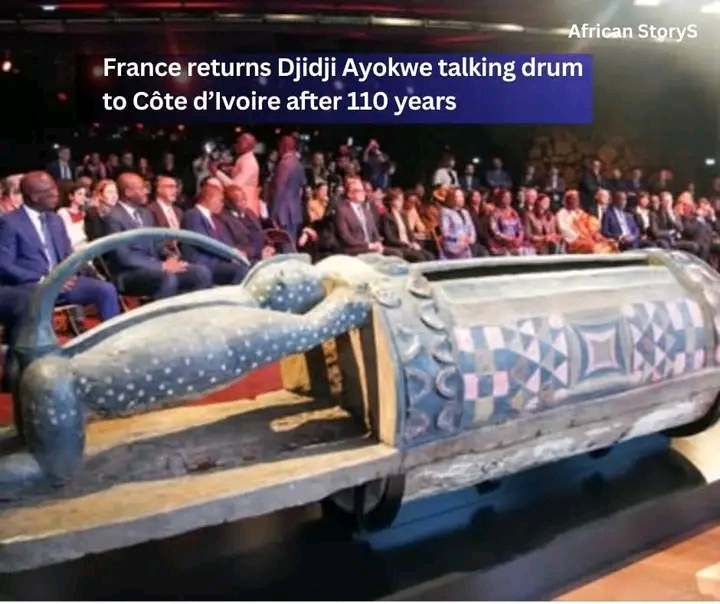 France has officially handed over the sacred Djidji Ayokwe talking drum to Côte d’Ivoire in a historic restitution ceremony in Paris, marking the return of the cultural artefact more than 110 years after it was seized during the colonial era.
