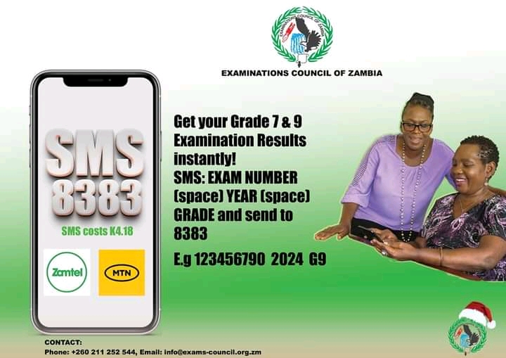 ✅Candidates will be able to access the results through the SMS Result Notification System (SRNS) via ZAMTEL and MTN mobile phone services using the 8383-short code.