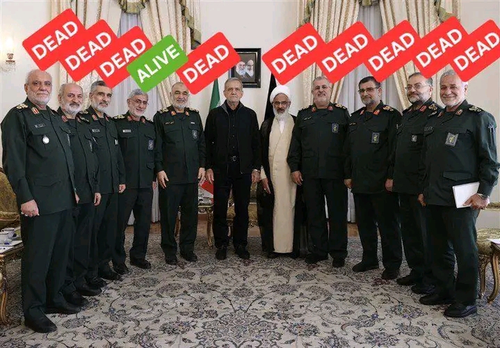 Last year Iranian President Masoud Pezeshkian posed for a photo with top Islamic Revolutionary Guard Corps generals. Today only one remains alive.