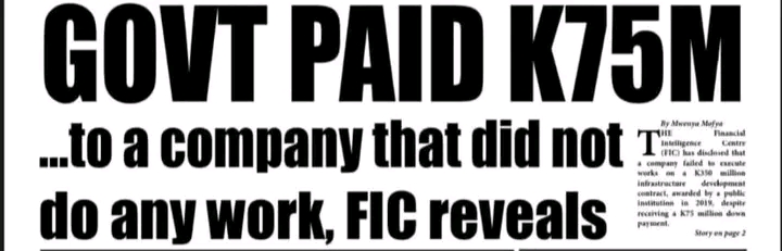 Are we now a country that pays K75 million for nothing and calls it progress? How did a government that came to power on the promise of ending corruption allow such a scandal to pass under its nose? Is it true, as revealed by the Financial Intelligence Centre (FIC), that K75 million was paid to a company that did not do any work at all—not a single brick laid, not even a report submitted? And if this was part of a K350 million infrastructure contract, how was it possible that a massive upfront payment was made without any deliverables? Who authorized the disbursement, and where were the accountability systems that are supposed to prevent such losses?