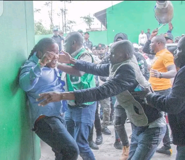 INNOCENT Kalimanshi is seen receiving a slap as a drum comes flying in his direction at the PF secretariat during a heightened confusion between his boys and another group.