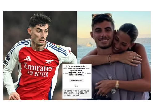 Havertz, 25, missed a penalty in Arsenal’s shootout defeat at the Emirates on Sunday before his partner, Sophia, who is expecting her first child with the Germany international, reposted two abhorrent messages she had received on Instagram.