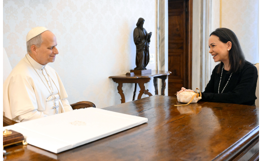 “Today, I had the blessing and honor of being able to share with His Holiness and express our gratitude for his monitoring of events in our country,” Machado said. “I also conveyed to him the strength of the Venezuelan people, who remain firm and in prayer for Venezuela’s freedom, and I asked him to intercede for all Venezuelans who remain kidnapped and missing.”