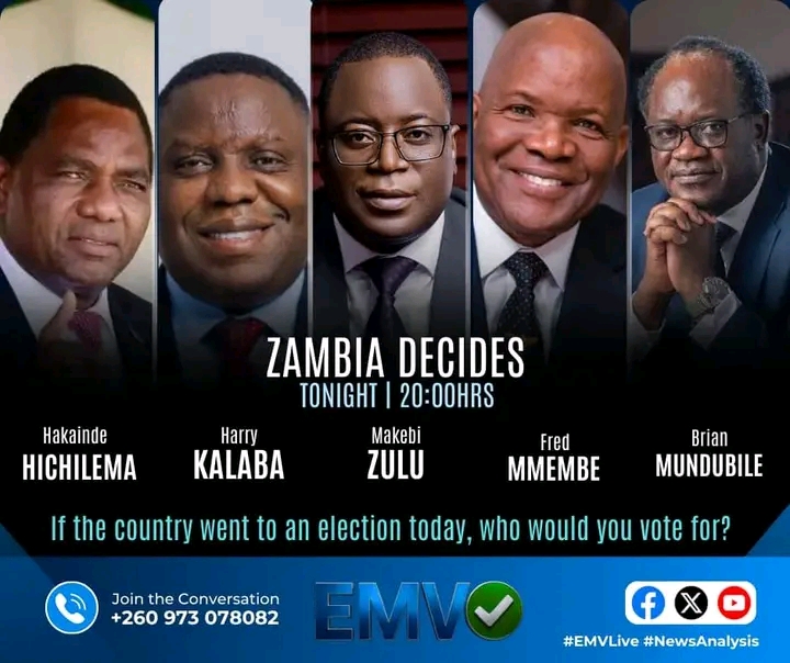 The EMV Podcast was carrying a 3-part series Opinion Poll on the questions of; “Who was likely to pose the strongest challenge against incumbent President Hakainde Hichilema” and “Who was likely to win the August 2026 presidential and general elections”.