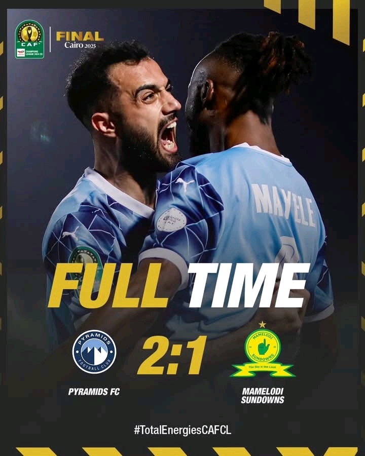 Pyramids FC beat Mamelodi Sundowns 2-1 in the second leg of the CAF Champions League final, securing a 3-2 aggregate victory and claiming their first-ever title.