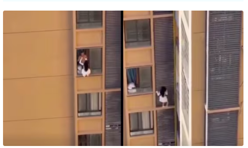 A dramatic video of a woman climbing out of a 10th-floor apartment to escape her lover’s wife has gone viral in China. The incident happened on November 30 in a residential building in Guangdong province and has shocked millions on mainland social media.