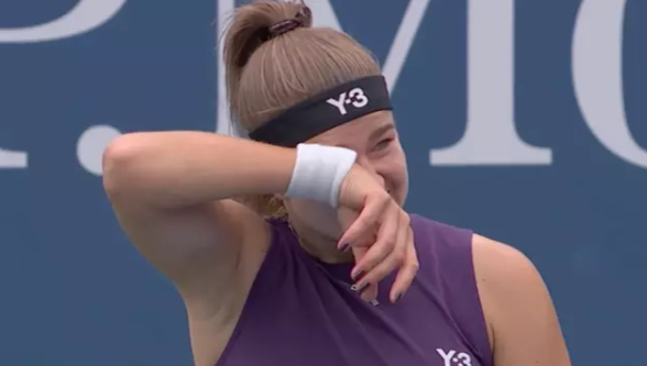 Down 4-1 in the first set and serving, Muchová became clearly upset as she started wiping away tears and gestured towards the crowd.