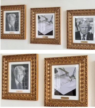 While the new “Presidential Walk of Fame” features portraits of all the presidents in gilded frames, Biden’s portrait is replaced with a picture of an autopen signing Biden’s name – a reference to Trump’s frequent allegation that the former president was addled by the end of his term in office and not really the one making decisions.