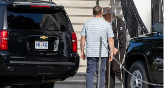 US President, Donald Trump was seen leaving the White House on Sunday morning, August 31, in golf attire before heading to his country club in Northern Virginia, following days of online speculation about his health.