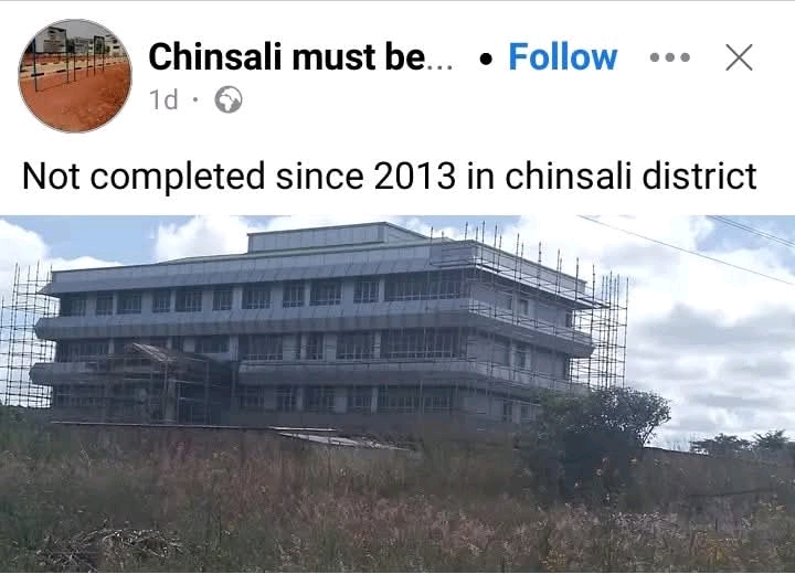 This uncompleted building in Chinsali, standing still since 2013, is a monument to the PF government’s corruption. Money was released, but it never reached its intended purpose. Instead, it was siphoned off into people’s pockets. Sad!