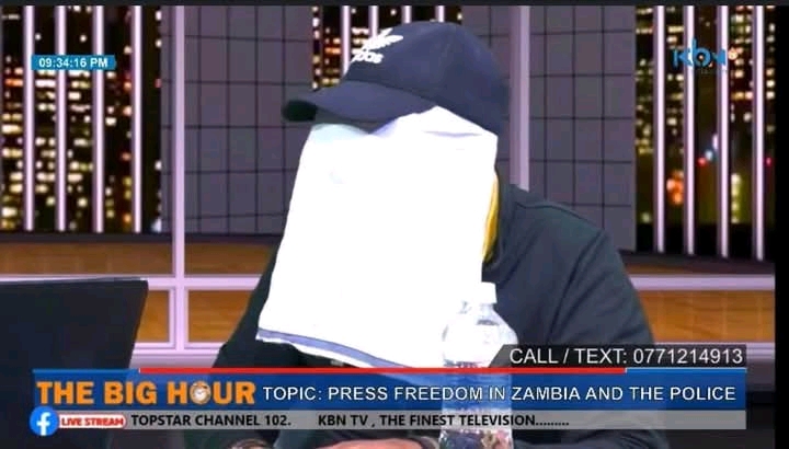 Lusaka… Thursday April 24, 2025  –  In what many have described as a chilling symbol of the state of press freedom in Zambia, a veteran investigative journalist appeared on KBN TV Tuesday night with his face covered, concealing his identity due to fear for his safety.