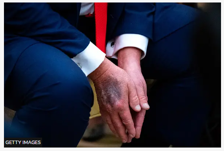 You might have spotted photographs on your social media feed showing bruising on the back of US President Donald Trump’s right hand.